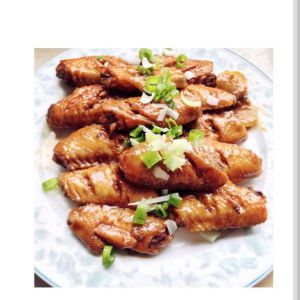 1.鸡翅斜切两刀,锅中放水,煮开后,放入鸡翅,煮两分钟,捞出后晾干水分。另起锅,放油,煎一下鸡翅,倒入葱姜(由于个人爱吃姜,所以放的有点多)