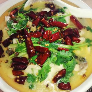 再往锅里放些油,把干辣椒和花椒进锅炒香再淋到盆中的鱼肉上面,撒写香菜或者葱花(按各人口味),酸辣爽的酸菜鱼就大功告成。味道好正