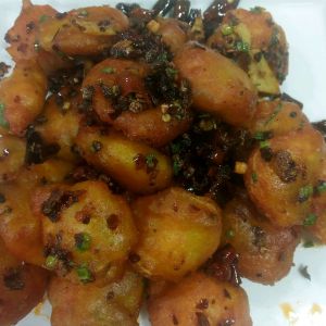 放入辣椒同炒香在放入土豆饼在放入老干妈和基本调味即可
