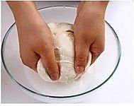 大约要换4、5次的水,直至面团洗不出粉浆,面团越来越粗糙有很多孔洞,剩下的面团即为面筋。
