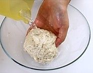 A料(面粉300克 水160克 盐2克)的面粉和水、盐混合成团,然后揉成光滑面团,室温饧三十分钟。
