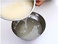 把所有洗出的粉浆倒入一个盆中,放置三小时以上让粉浆沉淀,然后缓缓倒出上面的清水,将余下的白色的面浆搅拌混合均匀。
