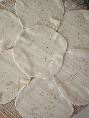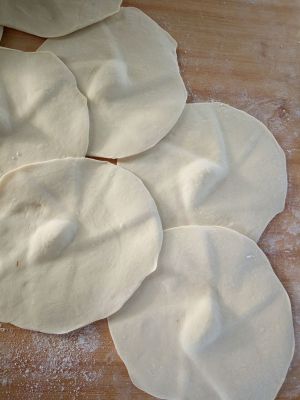 擀成面皮,中间要厚一点