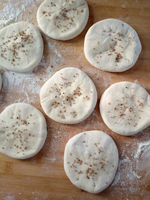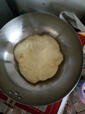 锅里放油,烙两面金黄鼓起,记得一定要掌握好火候,不然容易糊