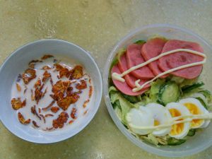 火腿鸡蛋沙律加玉米片牛奶做法步骤