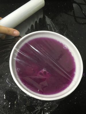 鋪上保鮮膜,放入冰箱冷藏1小時左右,時間長短與顏色深淺有關