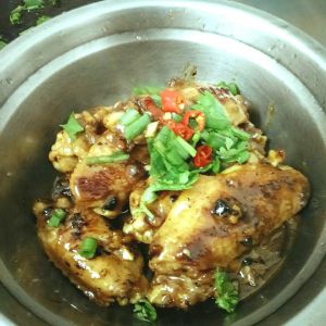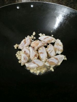 热锅,两面煎脆,煎的差不多,腌料大蒜汁倒进去一起爆香,加入淀粉水收汁。