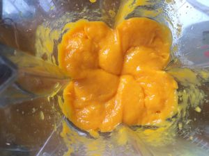 芒果洗净去皮去核放入料理机中加入20克细砂糖打成泥状。