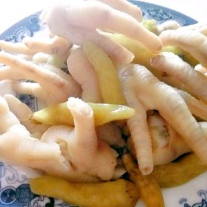 锅里加水,放入花椒、大料、姜片(也可以倒点料酒),煮开后放入鸡爪,再煮八至十分钟。捞出鸡爪过凉,洗净。准备一个保鲜盒,将泡椒连同泡椒水与凤爪一起倒入,泡椒水要淹没凤爪。放冰箱冷藏室冷藏