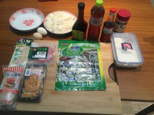 准备好食材,注意米饭不要太湿。(我是做了两个。正常只需要我用的材料的一半,如上面所用材料里面写的)