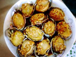 鲍鱼洗干净摆在盘子里,放一旁备用