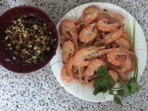 锅里水煮开,将洗干净的虾放进去,煮成红色就可捞出来了,用碗盛好