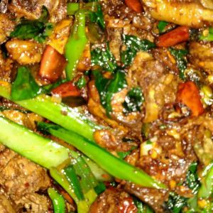 菜心放后,翻炒一会看到菜变嫩了,将小葱放下锅,翻两翻就可以起锅了。一道香碎麻辣的菜心辣子鸡出来了!