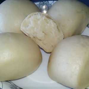 20分钟后 荜子上涂层油 馒头胚凉水上锅 大火烧开 计时20分钟, 20分钟后关火 静置3分钟开盖 把馒头拿出来晾凉
