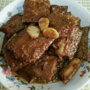 加入料酒,生抽,香醋,白糖。翻炒,加开水,没过带鱼。大火烧开,转中小火慢炖。
