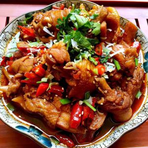 姜切丝,辣椒剪开,用布包或者炖汤料袋把干香料装起来(没有就直接放),