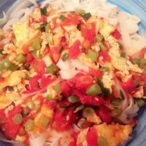 面条放冰水里后开始炒菜,鸡蛋炒好备用