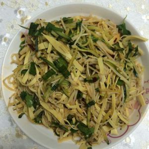 加少许盐,鸡精,酱油,醋,拌好。装盘。