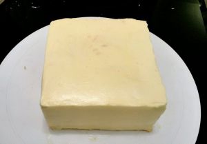 夹层均匀地抹上奶油霜后再抹好整个蛋糕胚,冰箱泠藏