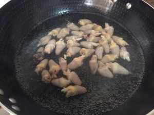 锅中倒入适量的清水烧开后放入鸡心焯水至变色即可