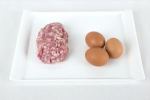 装盘:将蛋白液均匀地淋在肉糜上,再将蛋黄放在最上面。