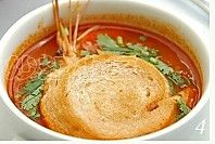最后加入30ML椰浆和20ML淡奶油稍煮即可起锅装入碗中,撒上香菜叶,配上黄油烤的面包片吃更香哦!