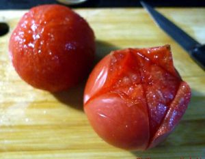番茄划十字刀,开水汆烫剥皮,切小丁,炒烂成番茄酱盛出。