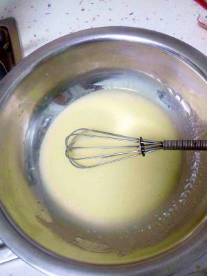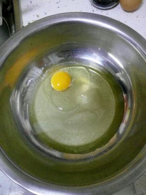 玉米油、细砂糖、1个鸡蛋,混合在一起。