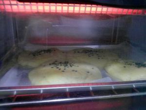 刷上蛋液,撒上熟芝麻,再用手轻轻的拍拍芝麻,这样粘的牢。180度20分钟左右,根据剂子大小调节时间,最后几分钟注意观察上色情况,烤好取出晾凉。