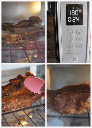 进烤箱啦!预热180度上下火,中层烤制。首先,背面朝上(就是肉少的那一面)烤制25分钟,之后翻面,再烤制30分钟。
