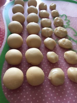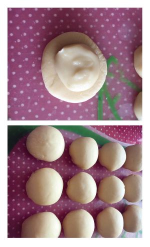 将油皮和油酥分成合适大小揉圆,放置8分钟松弛