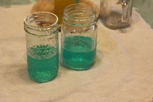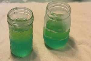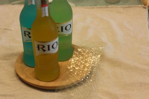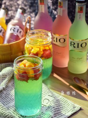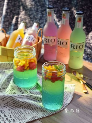 准备材料:1瓶蓝玫瑰味鸡尾酒、1瓶青柠味鸡尾酒和12克吉利丁片