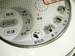 5.插上电源,按好豆浆键,另一指示灯跳入湿豆键。