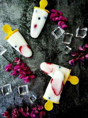 酸奶中加少许牛奶和细砂糖,拌匀,倒入模具中,颠几下震出气泡,放几粒蓝莓。牛奶不要放多,会有冰碴的口感。但是放了牛奶,凝固性更好些,也能是细砂糖溶解得更彻底,减少酸奶的酸味