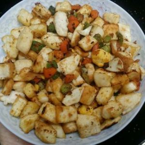 准备所有食材,切成块,蔬菜尽量切的比馒头小点儿,好熟。