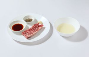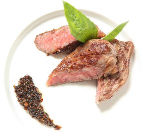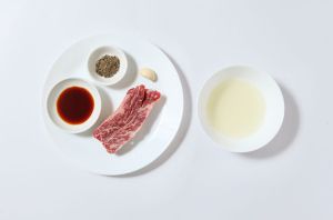 利用牛排的肉汁炒蒜末及黑胡椒,再倒入酱油、高汤,煮到收干即可