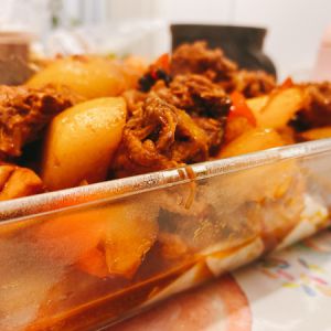 7.鸡肉炖好后放入土豆,注意⚠️这时候如果汤少了加一些水,继续煮10分钟左右。