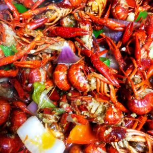 炒香后加入小龙虾继续翻炒。(这一步不要加洋葱,图片放错了)