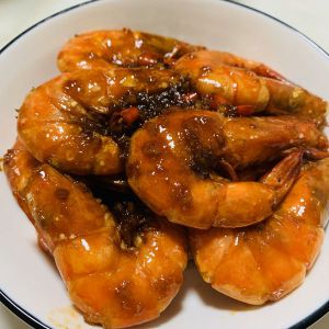 再把大虾放下去煸炒,一边边一边放番茄酱、料酒、酱油、糖、水,翻炒均匀
