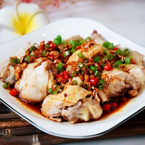 食材备好了,鸡腿装盘再淋入调味汁即可。