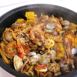 锅里加油,放入蒜姜小米椒,再加入麻辣香锅料包炒香
