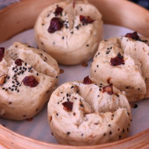 断口上放点红枣黑芝麻,放入笼屉盖上盖子静置15分钟,不要过度发酵,否则不会开花。