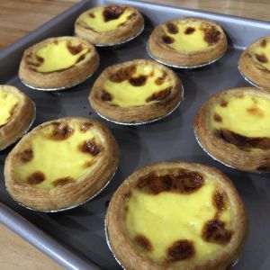 蛋挞水倒至9分满,烤箱上下火200度,预热5分钟,放入烤箱中层,烤25分钟。
