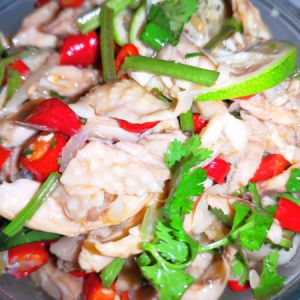 利用鸡腿泡冷水澡的时间准备配料,香菜、小米辣切小段,大蒜拍成蒜泥,柠檬切片备用