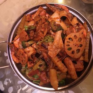 姜、蒜切片,起锅烧油姜蒜炝锅放入辣椒段、豆瓣酱、花椒和火锅底料炒出红油再放入料酒、生抽、蚝油、盐、糖、鸡精搅拌均匀全部食材放入炒熟即可