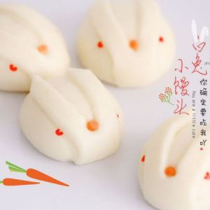 天冷我就多放了一些酵母粉,温水和面,和成光滑的面团温暖处发酵两倍大,发酵好后排气揉匀,揉到没什么气泡,切面很细腻就可以了,分两大份,每份再分16小份,搓成椭圆的面团摆入容器,留出发酵距离,我留了两个面团做兔耳朵