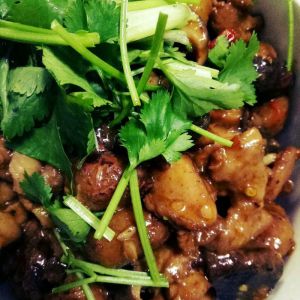 盖上盖子大火煮开,关中火烧制25分钟左右,待汤汁浓稠稀少后大火收汁。盛出撒上香菜。