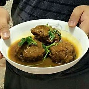 用手团成大肉丸,以能团成丸形为宜,不能太稀,否则不宜成形,稀了可适当再加一些干淀粉进去,一般狮子头以四个为最佳,但家常做不作太多要求。