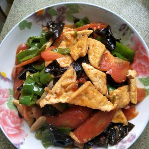 姜丝蒜末辣椒蒜蓉酱放锅里炒至小会,放入胡萝卜,木耳炒至一分钟,将煎好的豆腐倒入一起翻炒,放盐,放耗油,放点清水,正常火焖两分钟,大火收汁,装盘即食