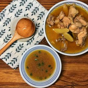 下黄酒和水.如果是坐月子吃就可以把水全部换成就.平时吃就可以水兑酒 这样温补不会太燥热.